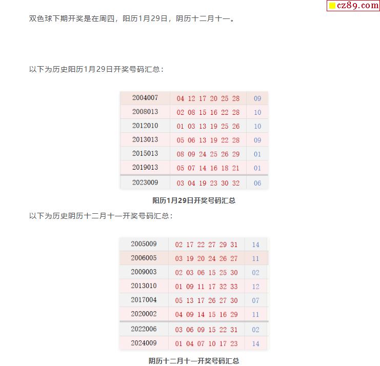 历史上的今天双色球1月29日开奖号码汇总
